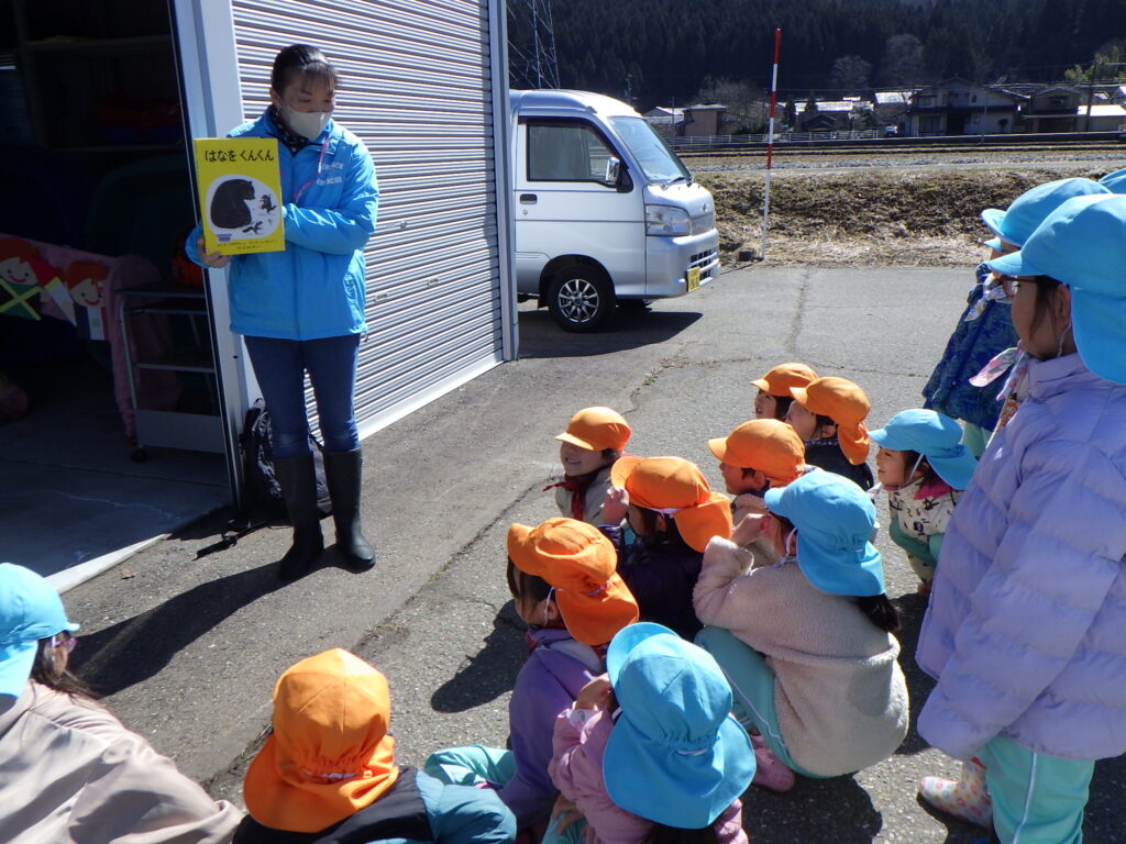 雪の中に1輪のお花を見つけ、春の訪れを感じる内容の絵本だったね!