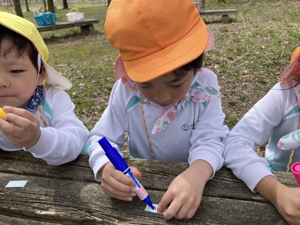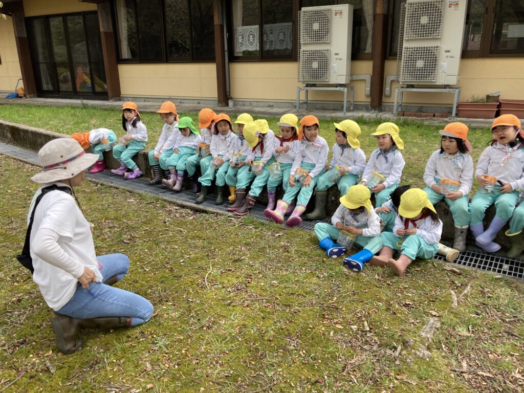 最後に分かち合いをしたよ。「大好きって言ってくれたよ」「りんごが好きだったよ」など、みんながお友達になってどうだったか伝え合ったよ。これからたくさんの自然の中で楽しい活動をしていこうね!