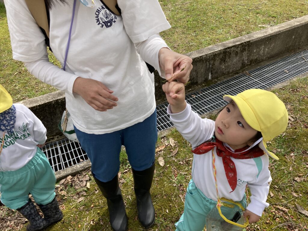 今年度初めての森のこども園活動があったよ!かわちの丘の自然で遊んだよ。