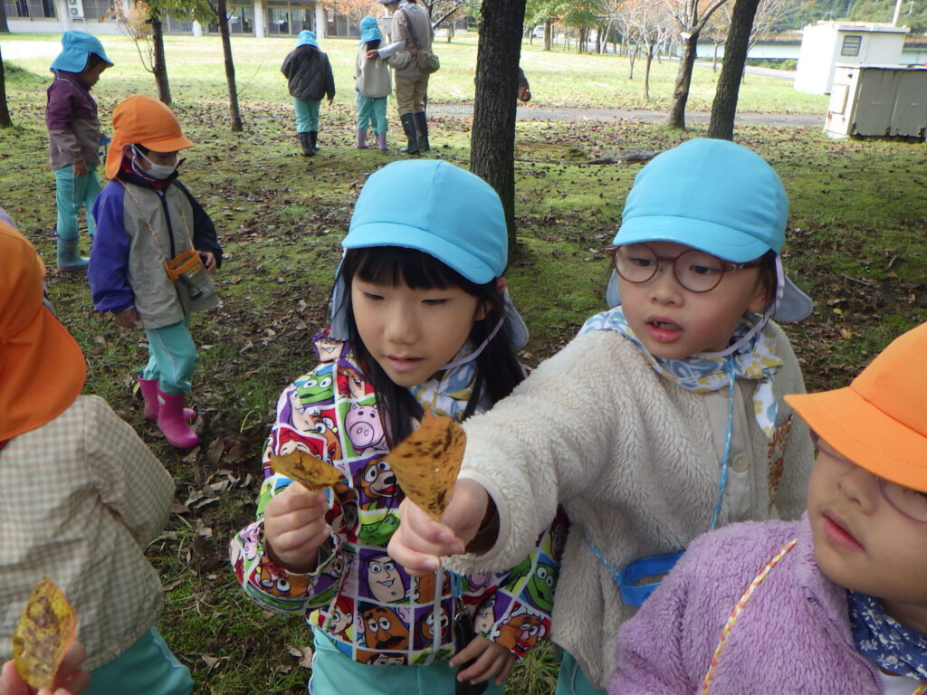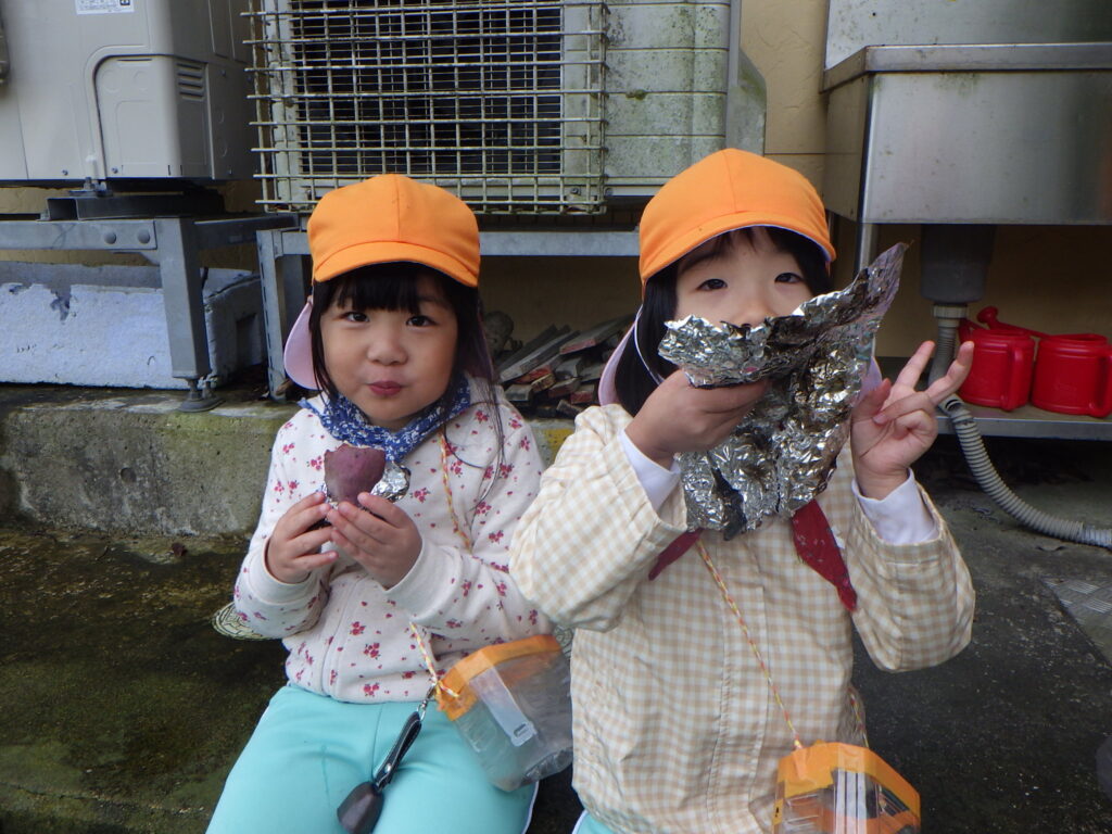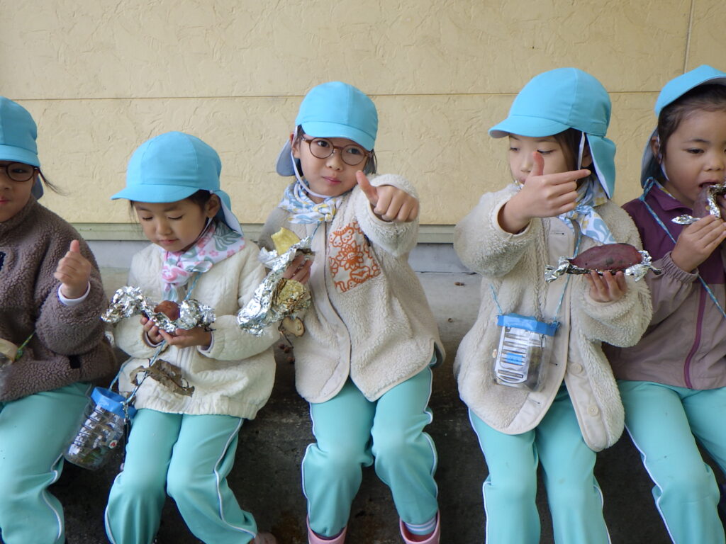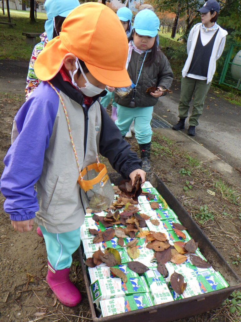 葉っぱ遊びの後は美味しい焼き芋を作る為にみんなで枯れ葉を集めたよ!