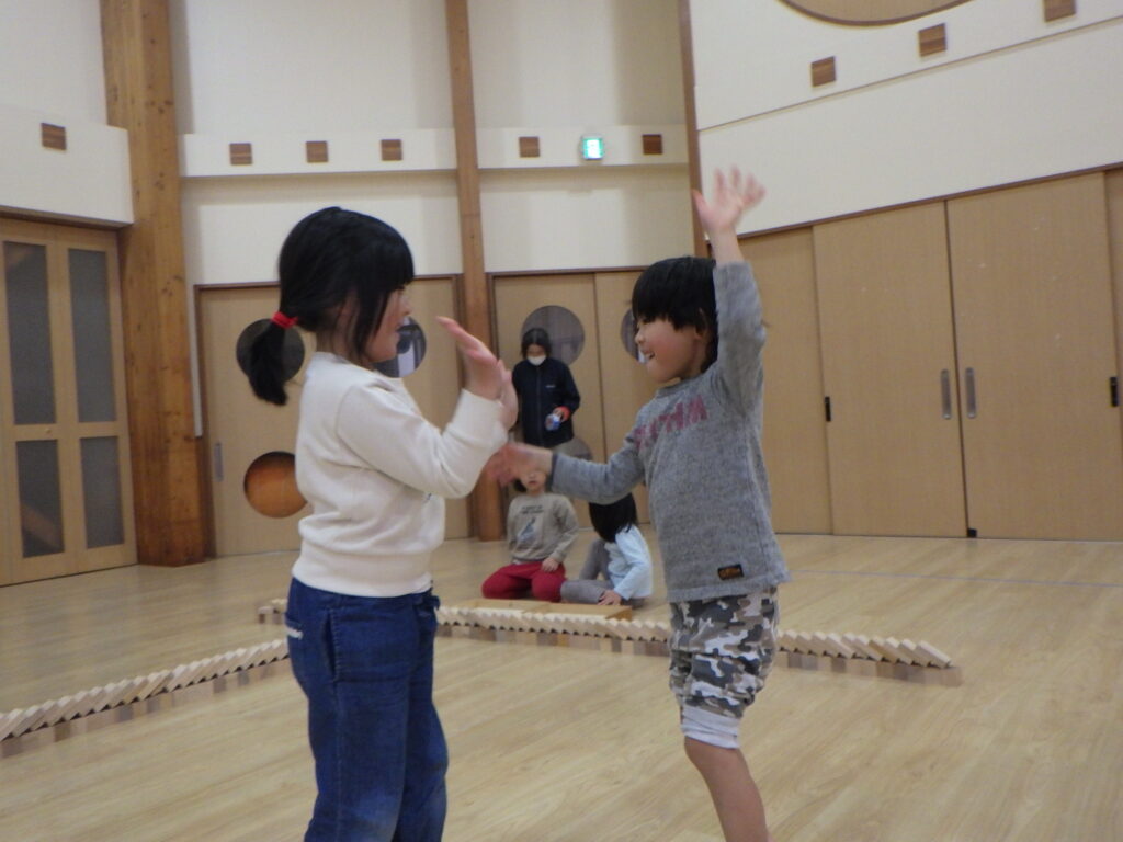 「やった~!」 ドミノ倒し成功~(≧▽≦)