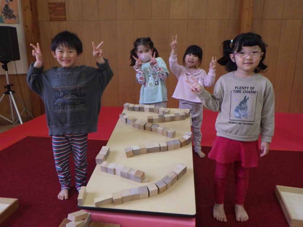 上手くいかなくても、「こうしてみる?」と色んな案を出しながらお友達と最後まで試行錯誤していたよ💪