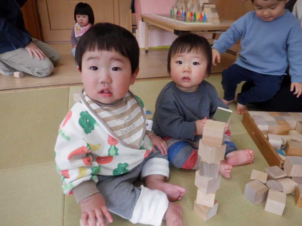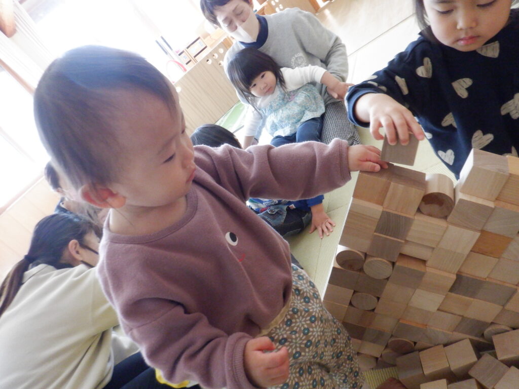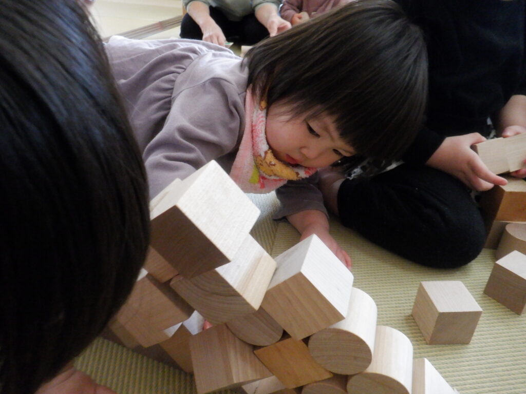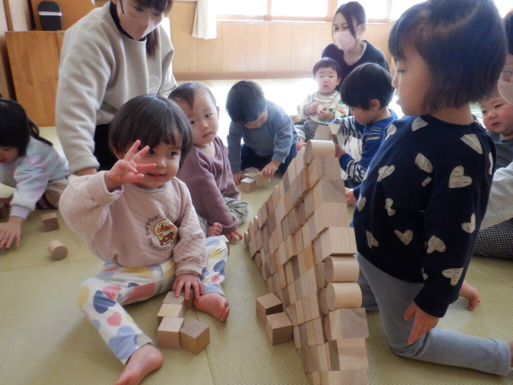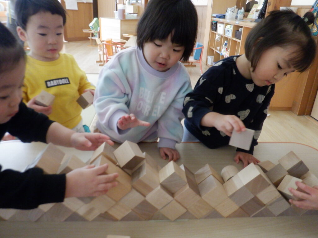 積み木のかずみ先生と一緒に”投げない”お約束をしてから積み木で遊んだよ!