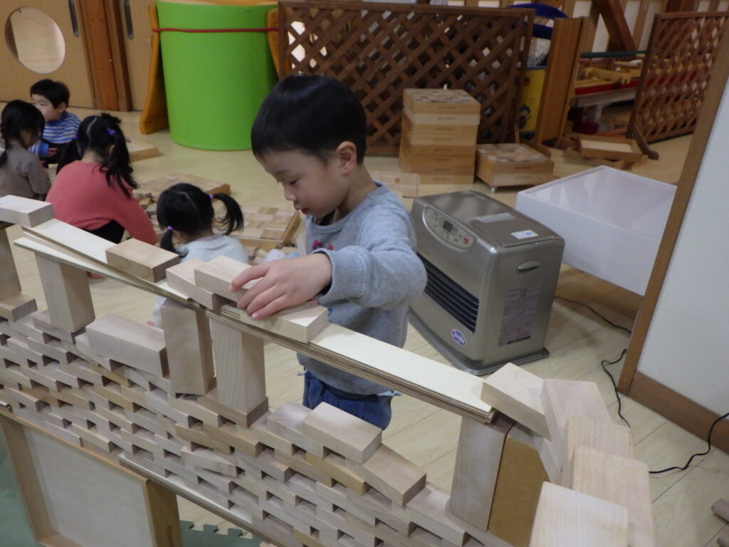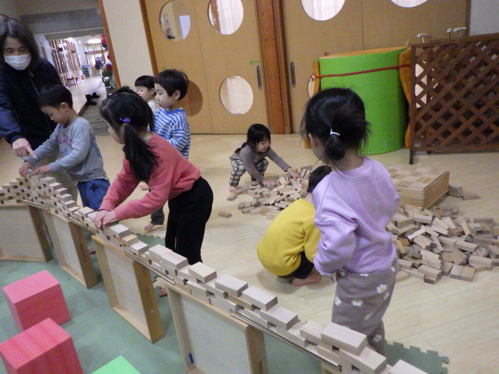 積み木であそぼうがあったよ!今日は何を作ろうかな?