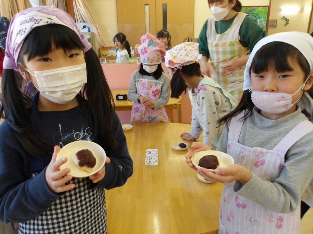 あんこバージョンときな粉バージョンの2つの作り方をみてもらったよ☆