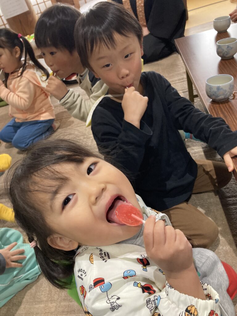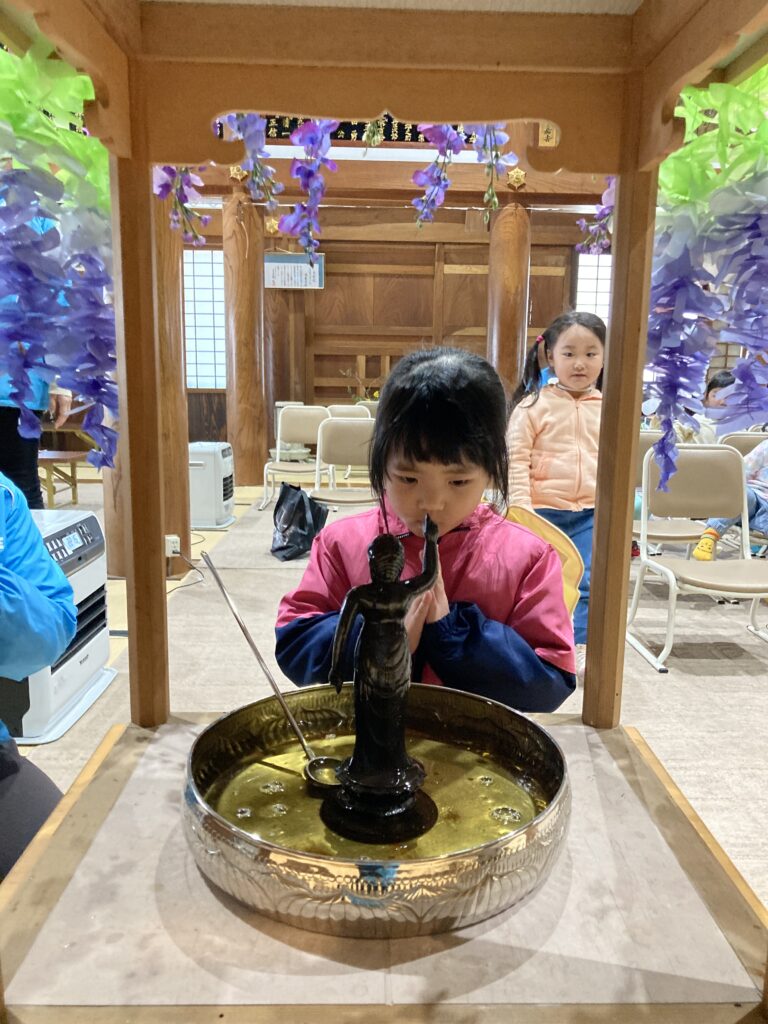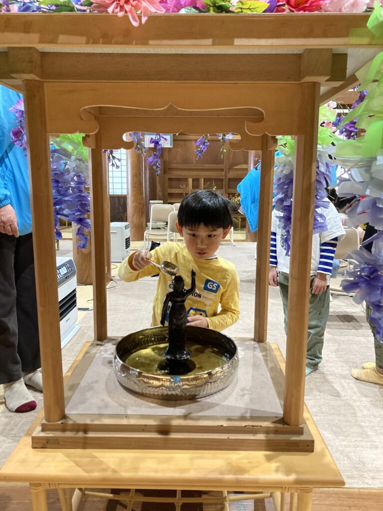 甘茶をそそいだ後は「おめでとうございます」も忘れずに…♪