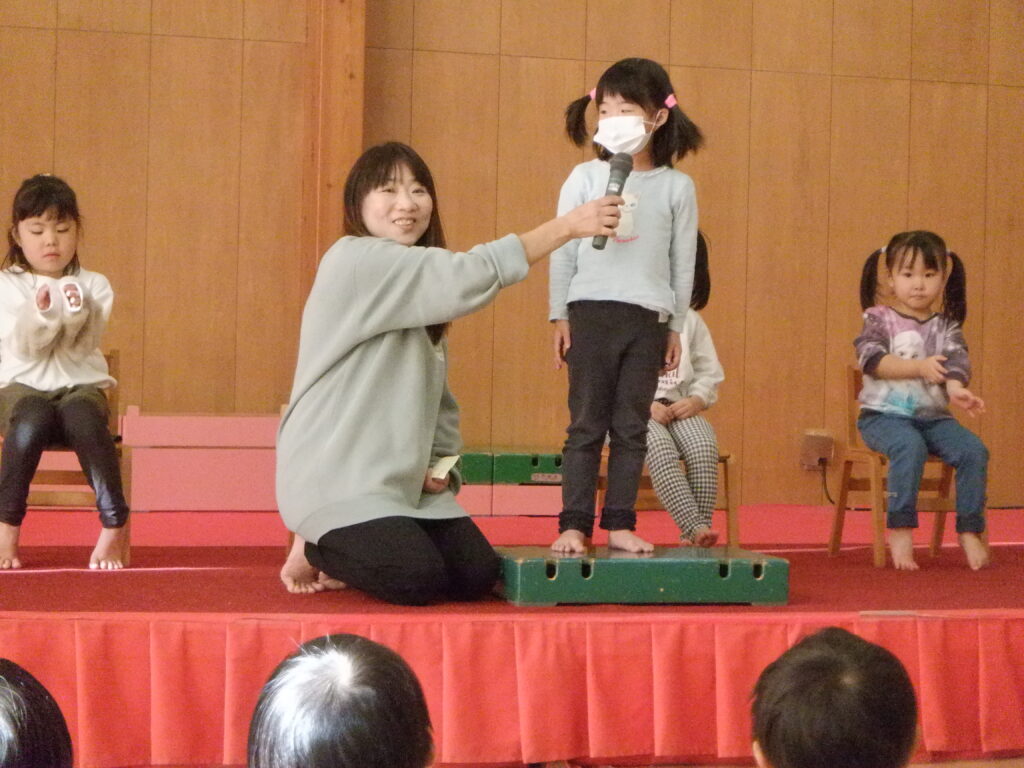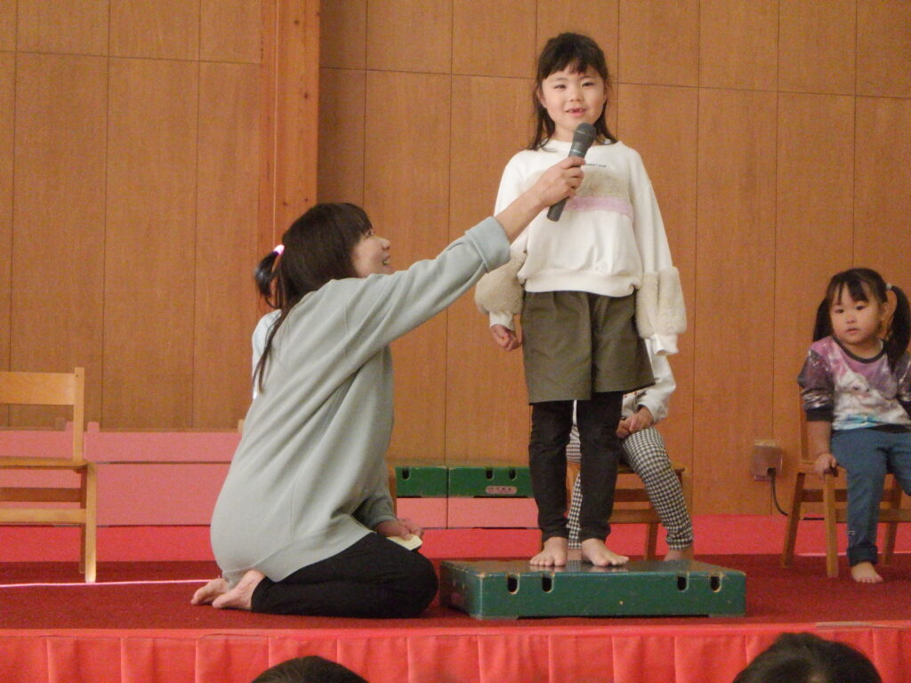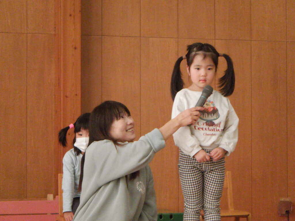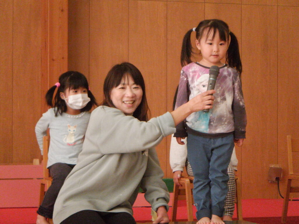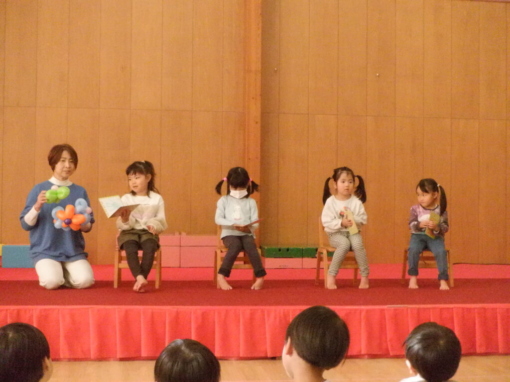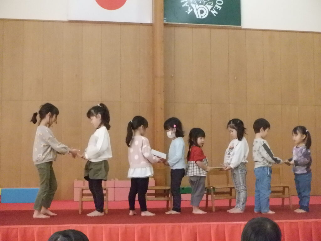 あぁ~おなかがいっぱいになったよ。これでお山にかえれるよ。かわちこども園のおともだちはみんないい子だね。ありがとう。ばいばい